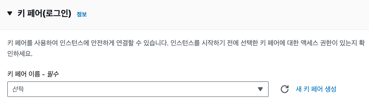 키 페어 이름 안에 아까 인스턴스 이름을 정한 것처럼 이름을 정해서 넣어주세요.